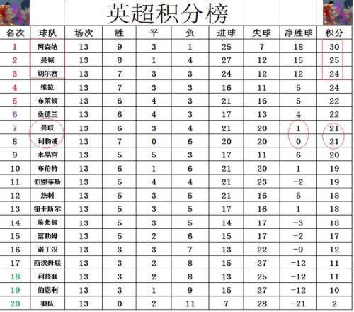 英超最新积分战报阿森纳平切尔西多曼城5分利物浦止颓势升至第8