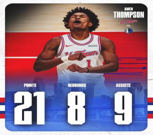 史密斯的状态更是起伏剧烈:手感火热时,他像极了缩小版的杜兰特,内外开花、无解单打;可一旦投篮手冷,整个人就变得迷失,攻防两端都找不到节奏。伊森的健康问题依旧是老大难,反复的伤病让他很难保持连续性,场上存在感时有时无。在这群年轻人中,唯有阿门汤普森稳定向上,成为火箭当下最可靠的潜力星。赛季初范弗利特报销,球队被迫让阿门顶上控卫位置。起初的适应期相当痛苦,前20场比赛阿门的表现可以用“挣扎”来形容:防守强度明显不如上赛季那么凶悍,进攻端更是犹豫不决,持球推进时经常出现停顿,传球时机也把握不准。那段时间,他的场均数据和正负值都处于低谷,许多人开始质疑他是否真的适合组织后卫角色。