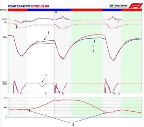 因此,车手必须要管理好“电量”这个战术核心武器。为了及时恢复电量,为下一圈的攻防储备电能,车手会在比赛中主动以降速、提前刹车甚至提前降档的方法来“充电”,这一做法叫做“战术性削波”(Tactical Clipping)。或许我们会在比赛中看到这样一种情况——“维斯塔潘现在正在收油,别以为他是主动放弃或是不敢晚刹车(Late Brake),他可能是在为下一圈的进攻先做战术性的电量回收。”